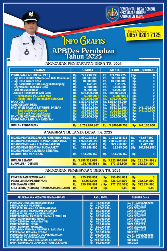 Alamat : Jalan Desa Rembul RT. 03 RW. 01 Kecamatan Bojong Kabupaten Tegal Kode Pos 52465